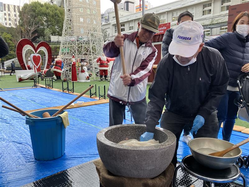 12/14(日)、福岡大名ガーデンシティで開催された「大名校区餅つき大会」へ、当協議会も参加させていただきました!