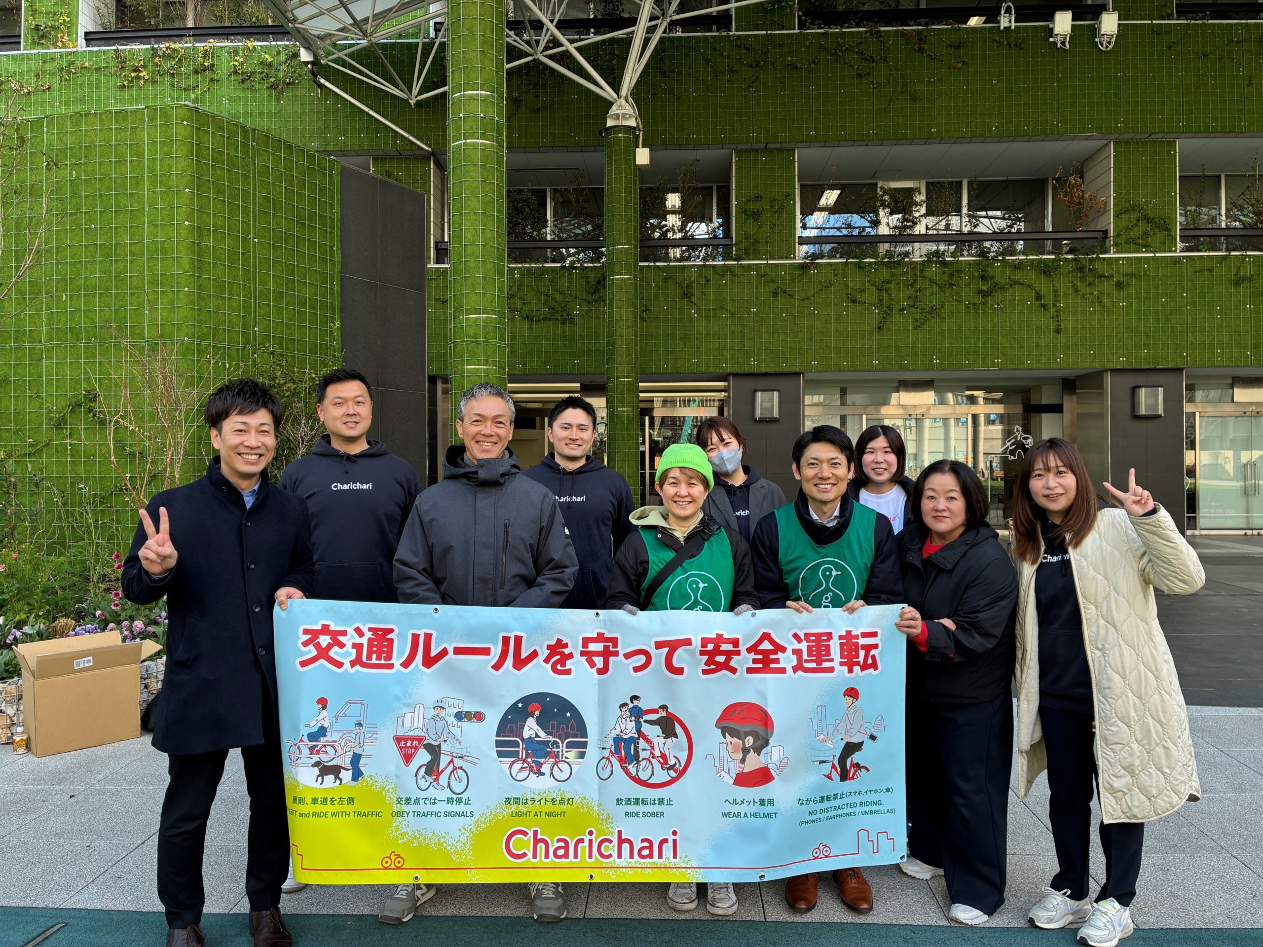最後に、チャリチャリ株式会社さま、グリーンバードの皆様と事務局で記念写真を撮りました☆