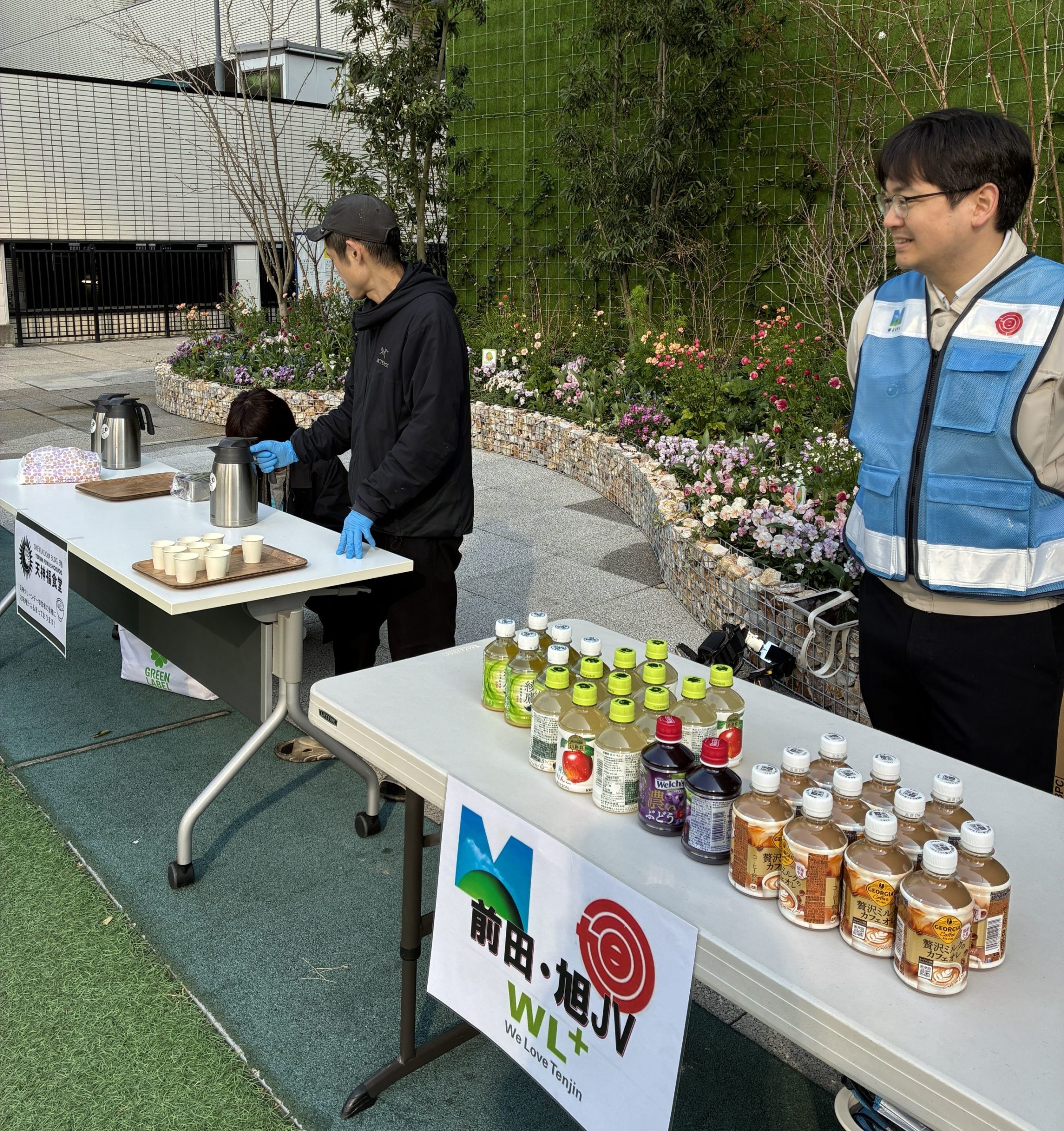 ドリンクをご提供いただいております前田建設工業㈱の皆様、お味噌汁の試飲をご提供くださっている